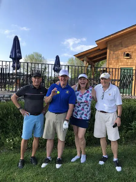 Chris Gorman, Jamie Kveton, and Paul DeGeest (not pictured) had an excellent time representing BHL Rotary Club at the 2025 Blaine Police Federation Golf Tournament, sponsoring a hole to support the Federation and chat with golfers about Rotary.